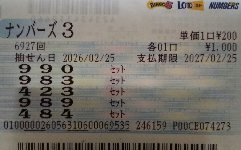 ナンバーズ3 セットストレート当選!