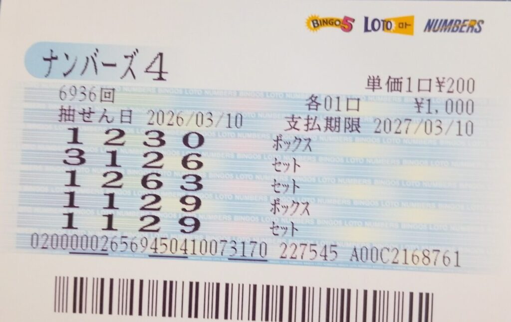 ナンバーズ4 ボックス当選!