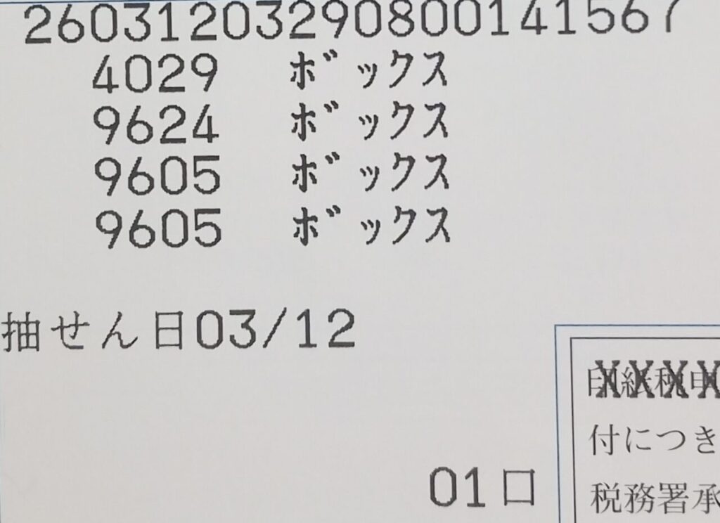 ナンバーズ4 セットボックス当選!