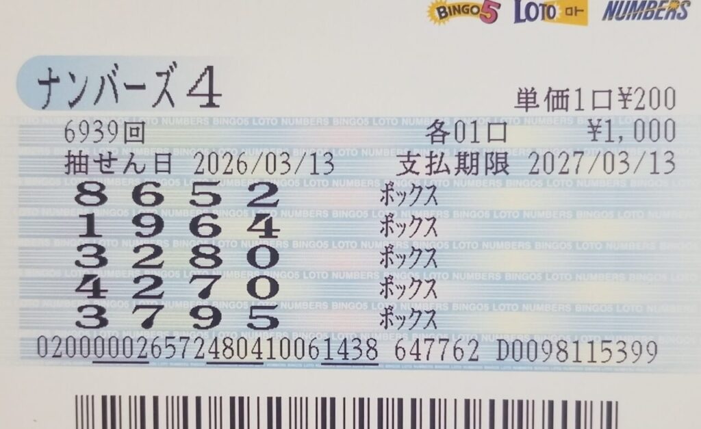 第6939回 ナンバーズ4