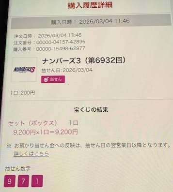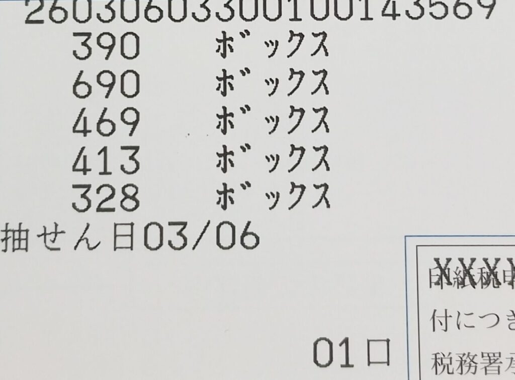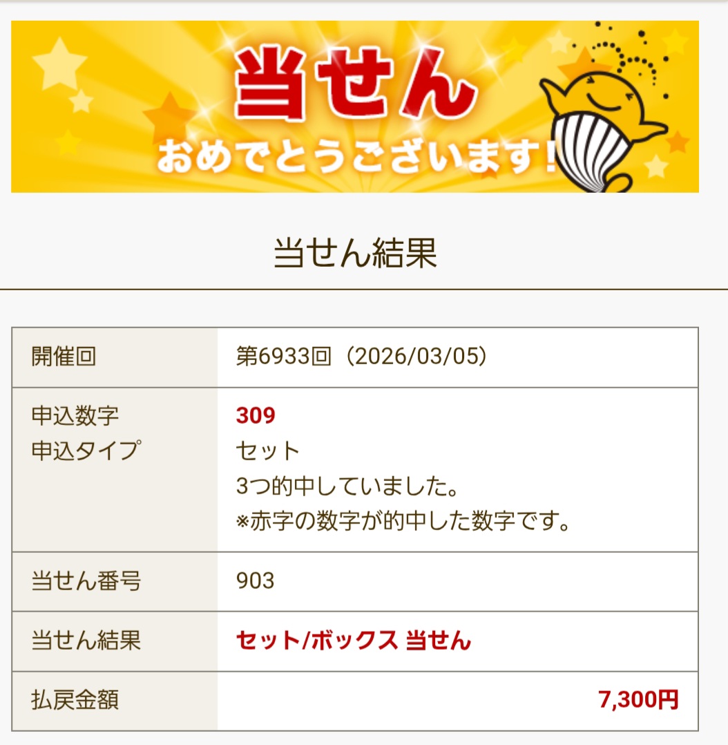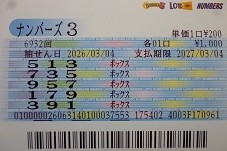 ナンバーズ3 ボックス当選!