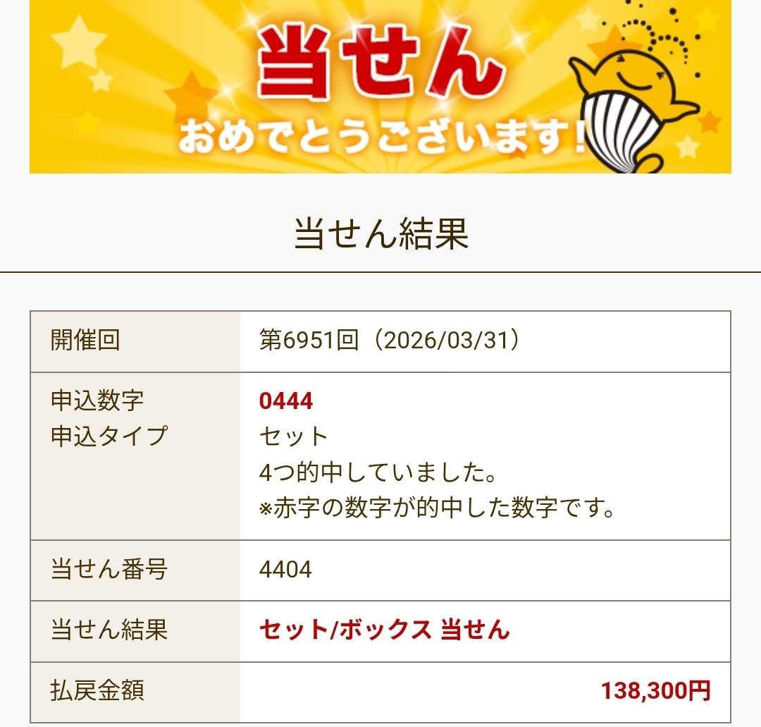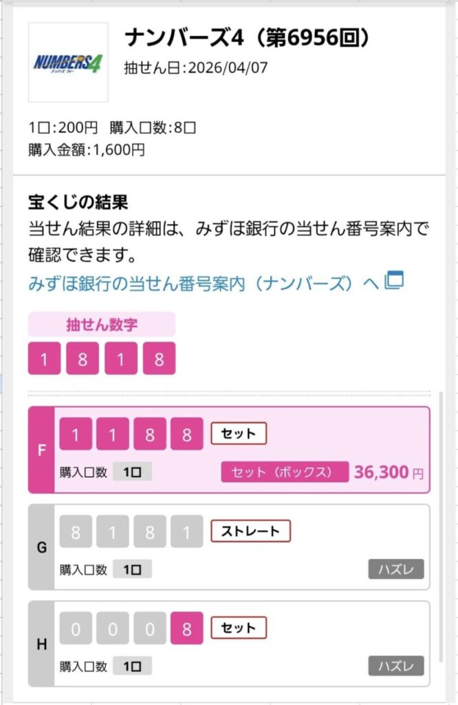 ナンバーズ4 セットボックス当選!