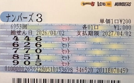 ナンバーズ3 セットボックス当選!
