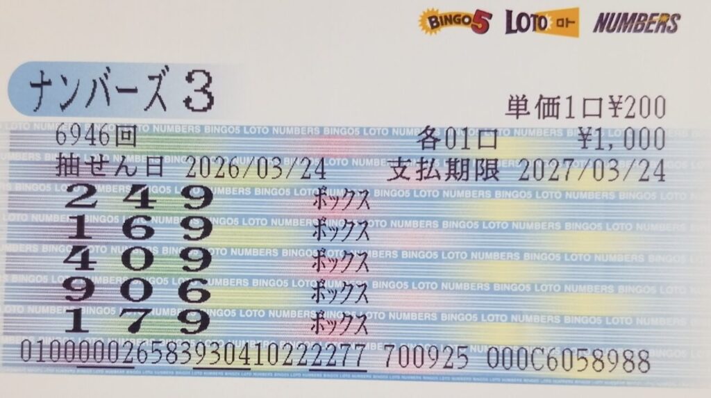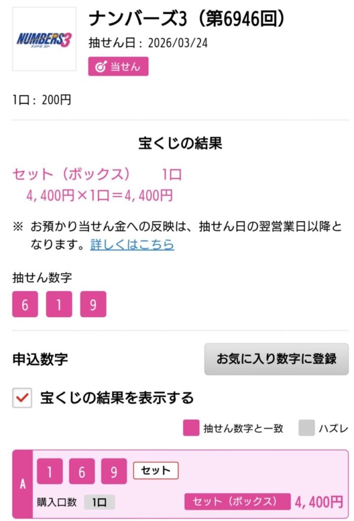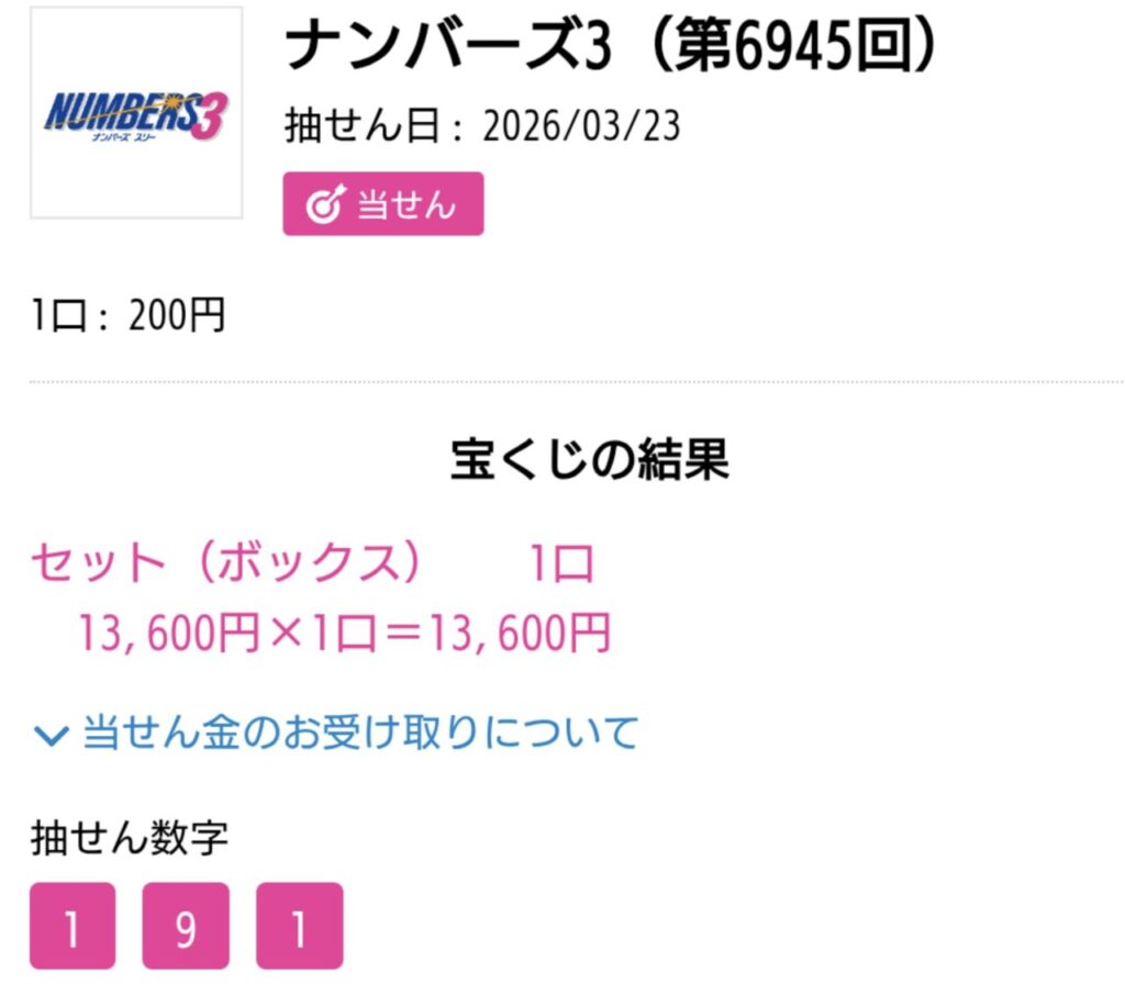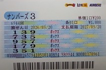 ナンバーズ3 ボックス当選!