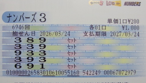 ナンバーズ3 セットボックス当選!