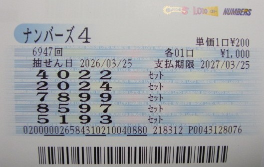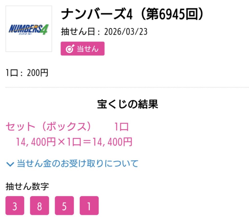 ナンバーズ4 セットボックス当選!