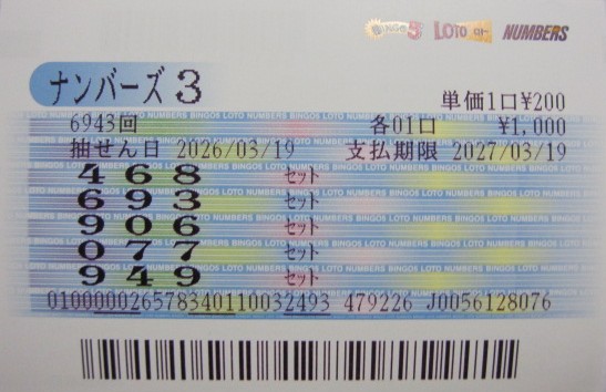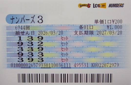 ナンバーズ3 セットボックス当選!