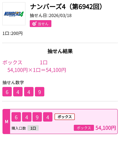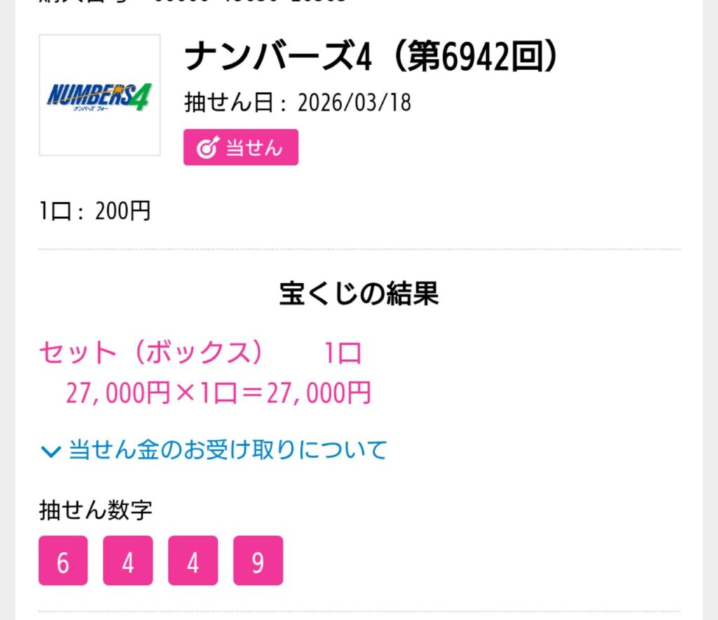 ナンバーズ4 ボックス当選!